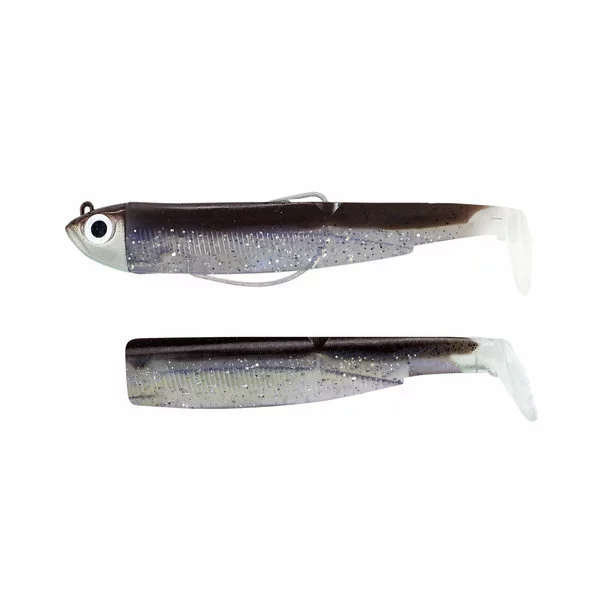 De black minnow is een mooie zachte/soepele shad voor het vissen op snoekbaars of zeebaars. Uiteraard zal een baars of snoek hier ook op af komen. Bestaande uit complete set (haak/kop/lijf) en 1 reserve lijfje.