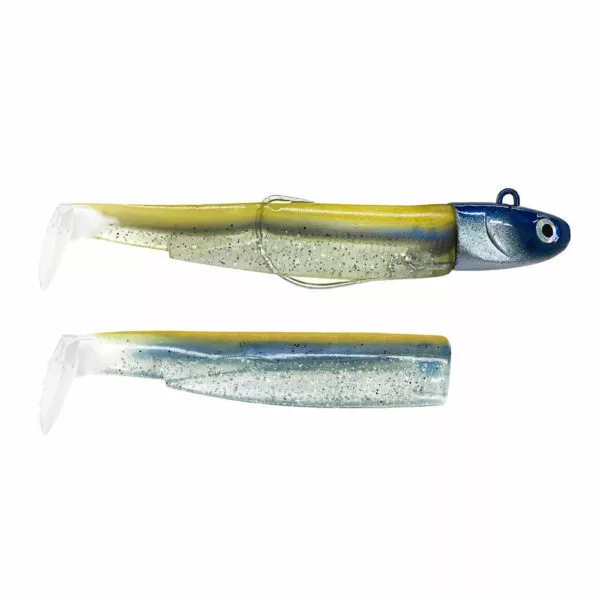 De black minnow is een mooie zachte/soepele shad voor het vissen op snoekbaars of zeebaars. Uiteraard zal een baars of snoek hier ook op af komen. Bestaande uit complete set (haak/kop/lijf) en 1 reserve lijfje.