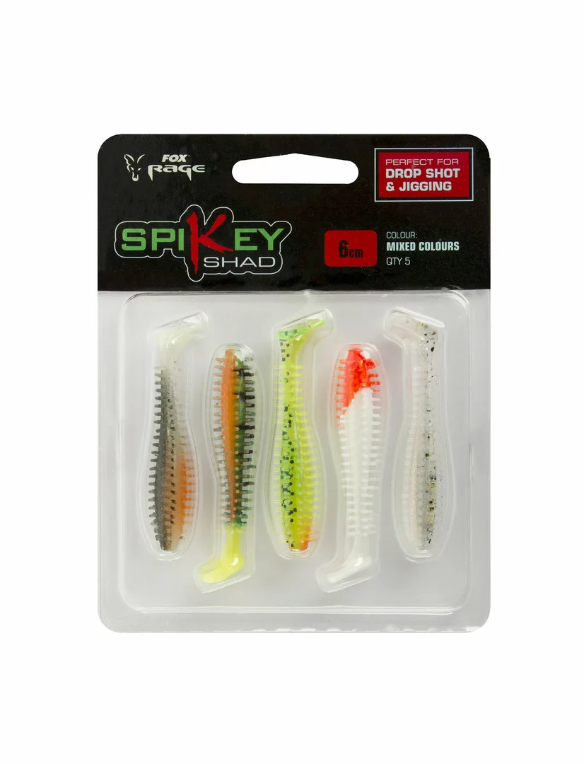 Setje met 5 verschillende kleuren Fox Rage Spikey shads. De shadjes zijn goed te gebruiken in combinatie met een loodkop maar ook met een andere rig montage zoals de carolina of texas rig.