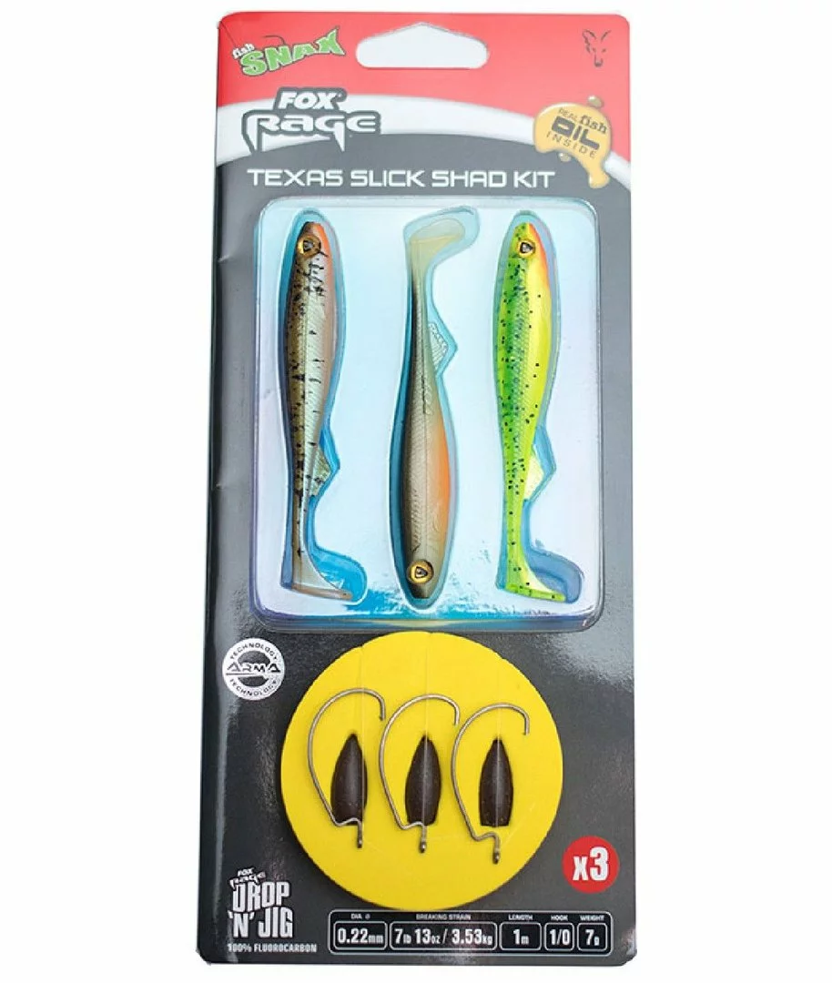 De Fox Rage Texas Slick Shad Kit is een handige kant-en-klare Texas kit. Knoop ze aan je onderlijn, bevestig het kunstaas en ga direct aan de slag.