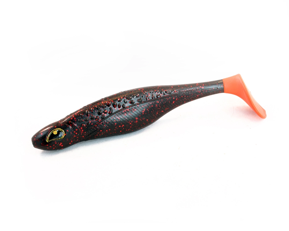 Tevens kan de Paddle over de bodem worden ge-jigt. De Paddle heeft een onwijze swing in het lichaam. Deze schudt en draait als een gek. De staart doet daar nog een grote schep bovenop. Wat een stuk kunstaas. Roofvis voelt de Paddle al van ver naderen. Neem van ons aan; de Paddle is echt iets bijzonders. Voorzien van een brede buik en smalle rug; 100% het tegenovergestelde van de vele shads die al op de markt verkrijgbaar zijn. Dik silhouet in het water, grove spikkels op de rug voor nog meer vibratie! Haakindicatoren op de rug, waarbij de maten 2/0, 4/0 , 6/0 en 8/0 netjes op de rug afleesbaar zijn. De jighaak zetten is nog nooit zo makkelijk geweest. Check ze snel bij uw winkelier en VANG ZE!