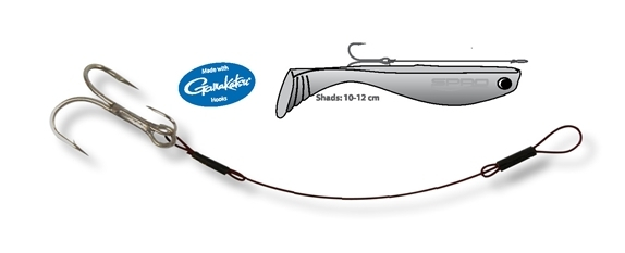 Gemaakt van camouflage bruin, 1×7 30Lbs RVS staaldraad met een Gamakatsu Twinex maat #004. Aanbevolen voor shads van 10-12cm.